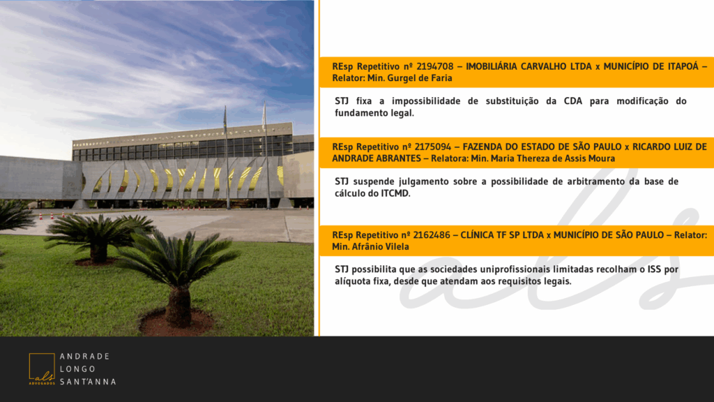 Tema: ISS em alíquota fixa para as sociedades uniprofissionais limitadas – Tema 1323/STJ.