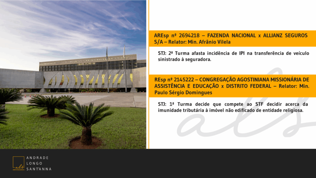 No mesmo sentido, a Primeira Turma do STJ já havia se manifestado recentemente no julgamento do AREsp nº 2.849.743, conforme divulgamos em Julgamentos Tributários / 8 de outubro de 2025.